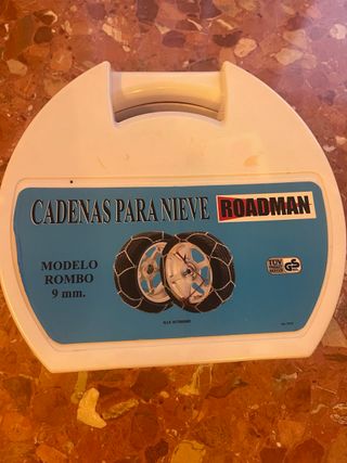 Cadenas para la nieve de la marca Roadman, modelo Rombo. Nuevas. Sin uso. - Grosor de 9 mm. - Diseño en rombo para mayor tracción. - Incluye caja de almacenamiento y guantes para colocarlas.