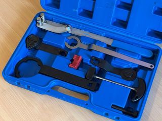 Juego de , herramientas de sincronización / calado de distribución para motores VW VAG EA211. Ideal para trabajos de correa o cadena de distribución en motores gasolina. Compatible con modelos como VW Golf 7, Jetta y otros vehículos del grupo VAG con motores 1.2 y 1.4 TSI / TGI. Características: • Juego completo de 8 piezas • Para bloqueo y sincronización del motor • Compatible con motores EA211 • Fabricado en acero resistente para uso mecánico • Ideal para taller o uso particular