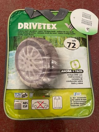 Cadenas textiles para la nieve marca DRIVETEX, talla 73. totalmente nuevas no se han usado nunca. venta por cambio de coche. - Ideales para mejorar la tracción en superficies heladas o nevadas. - Fabricadas en textil resistente. - Incluye tabla de medidas compatibles para neumáticos.