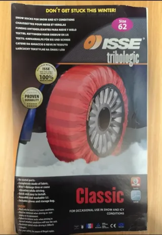 Cadenas textiles para ruedas de coche, ideales para circular con seguridad en condiciones de nieve y hielo. - Fácil instalación. - Material textil resistente. - Compatibles con varios tamaños de neumático (ver imagen para detalles). - ESTÁN NUEVAS SIN USAR (se compraron para llevar en el coche y nunca se han usado). - Las vendo por 40€ (en Internet se están vendiendo entre 50/60€).