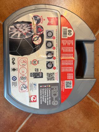 Cadenas para la nieve modelo RD-9, tamaño 80. - Cierre rápido y ajuste sencillo. - Homologadas para ABS y ESP. - Velocidad máxima recomendada: 50 km/h. - Grosor de la cadena: 9mm. Sin utilizar.