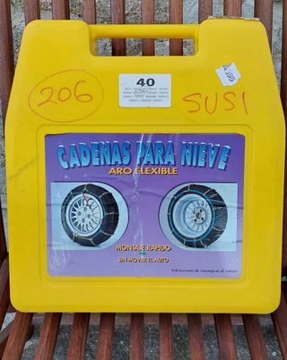 Vendo cadenas de neumáticos de Aro Flexible Modelo 40, Incluyen todas las medidas compatibles: 135 R15, 145 R14, 155 R13, 600 R12, 155/70 R14, 165/65 R14, 165/70 R13, 170/65x340, 175/60 R14, 175/65 R13, 175/70 R12, 180/60x340, 180/65x315, 185/60 R13, 190/55x340, 195/55 R13. El sistema es fácil de instalar y ofrece una tracción segura en nieve y hielo. Viene en su estuche original rojo y con instrucciones en varios idiomas. Ideal para conducir con seguridad en invierno. VENDO MAS CON TALLAS DIFERENTES EN MI PERFIL. Llamar al: 711 201 723. Recoger a las afueras de Boadilla del Monte.