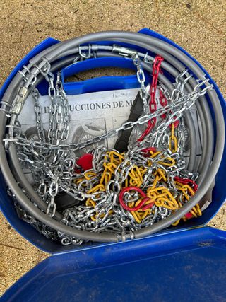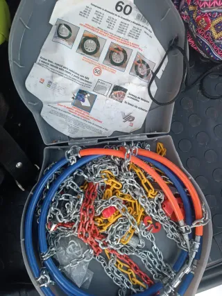 cadenas de tela nuevas para Coche y bastantes modelos. Están sin usar porque finalmente no me hicieron falta y ya no tengo ese vehículo. Son muy fáciles de poner y son reutilizables