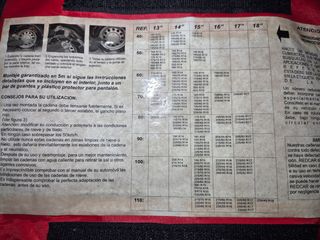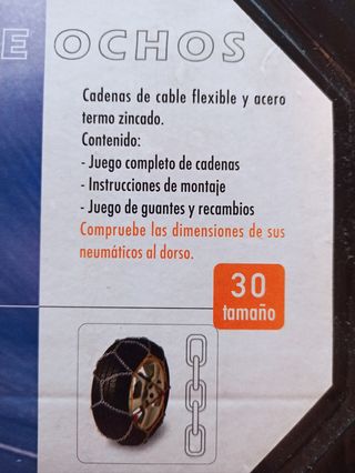 Cadenas para nieve de coche, en la primera foto viene indicado para que medidas de ruedas son válidas.