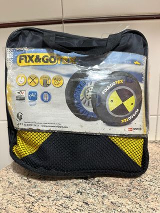 Cadenas textiles para nieve FIX&GO. - Homologadas TUV Austria. - Compatibles con ABS y ESP. - Incluye bolsa de transporte. Sin estrenar, las medidas están en la foto