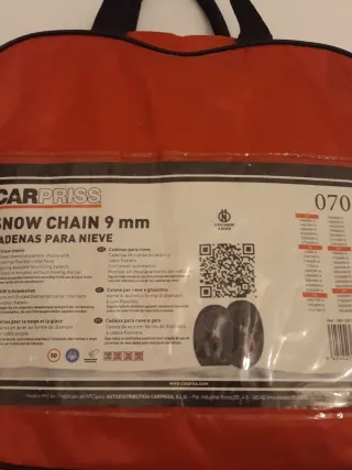 Vendo cadenas de nieve aptas para todas las medidas de neumáticos indicadas en la primera foto. Están nuevas, en perfecto uso , con todas sus prestaciones, no las he usado ni una sola vez. Soy de Córdoba y las compré para un viaje en Voyager a los Pirineos q finalmente no hice. Las he sacado de su funda para las fotos.
