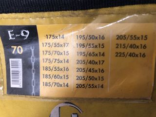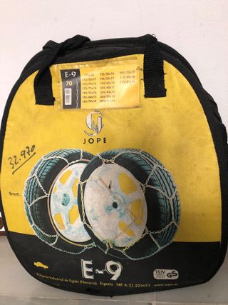 Juego de cadenas para nieve JOPE modelo E-9, talla 70. Incluye bolsa de transporte. - Cadenas de 9mm de grosor. - Compatibles con varias medidas de neumático (ver etiqueta). - Homologación TÜV GS.