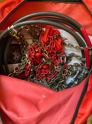 Cadenas textiles para nieve y hielo marca Trendy, modelo 42-M. - Peso neto: 0,75 kg. - Incluye instrucciones de montaje. - Homologadas para 40 km/h. Como nuevas. Usadas solo una vez para un tramo muy corto #invierno #esqui #montaña #M+S #Neumaticos #snow