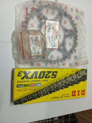 Kit de transmisión JT Sprockets y cadena DID 520VX3. - Piñón JT JTF736-15. - Corona JT JTR735-45. - Cadena DID 520VX3 retenes 108L Made in Japan.