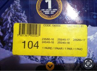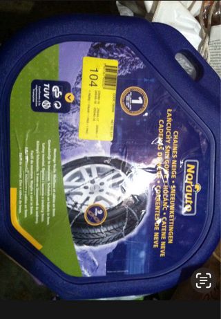 Cadenas de eslabones metalicos de Norauto. Las medidas de neumáticos para las que don validas figuran en la foto 235/60-16. 255/45-17. 255/60-17. 245/45-18. 255/40-18