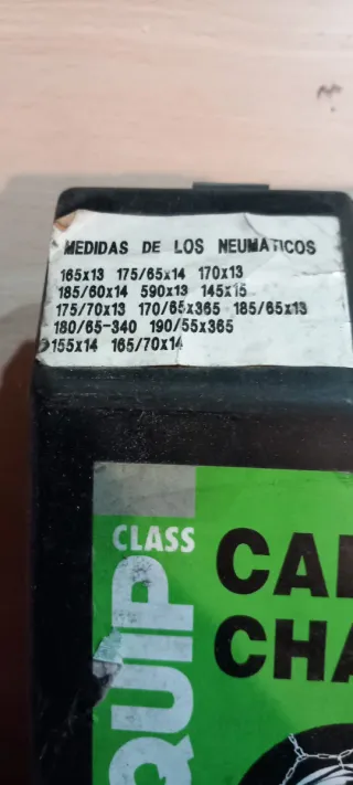 Cadenas para la nieve de la marca CLASS QUIP. Nuevas. - Medidas compatibles: 165x13, 175/65x14, 170x13, 185/60x14, 590x13, 145x15, 175/70x13, 170/65x365, 185/65x13, 180/65-340, 190/55x365, 155x14, 165/70x14.