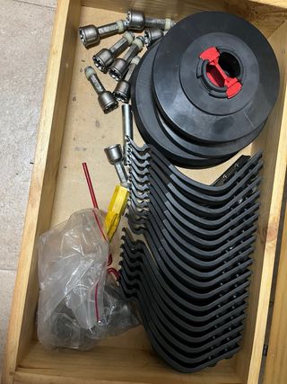 Cadenas de nieve Spikes Spider Compact. - Incluye 1 indicador de distancia. - Contiene 2 adaptadores (disco). - Incluye 1 llave de par roja. - Incluye 2 placas de montaje. - Bolsa de plástico con 8 FixClips.