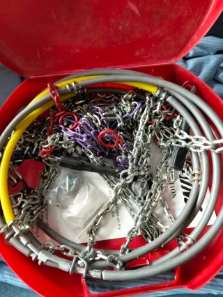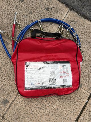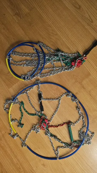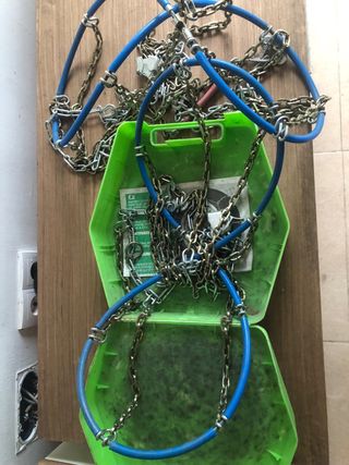 Vendo porque me equivoqué en las medidas al comprar. Juego de dos cadenas de coche para nieve, intenté poner una de ellas una sola vez pero no cabía. Medidas de neumático compatibles: 13” 145/80 165/70 175/70 175/65 185/65 195/60 14” 135/80 155/70 155/65 165/60 175/60 185/60 185/55 195/55 205/50 15” 175/55 185/50 205/45