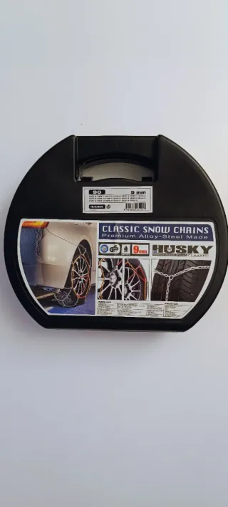 Cadenas para la nieve de la marca Husky, modelo 90 y con un grosor de 9 mm. Vienen en su estuche original. Entrega en Valencia. - Cadenas de aleación de acero premium. - Incluye estuche de transporte.