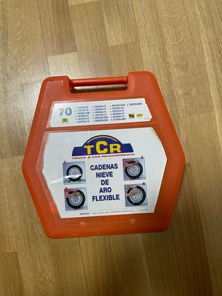 Cadenas de nieve TCR modelo 70 para camiones y coches. - Compatibles con una amplia gama de medidas de neumáticos: - 175/70x15, 175/75x14, 180/65x390, 185/60x15, 185/65x15, 185/70x14 - 195/50x16, 195/55x15, 195/65x14, 195/70x13 - 200/65x340, 200/55x390, 200/50x365 - 220/50x365, 205/50x15, 205/55x14, 205/60x14, 205/65x13, 210/55x365 - Diseño de aro flexible.
