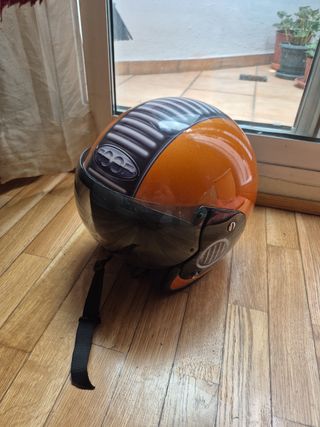 Casco de moto Roof de color naranja y detalles en negro. Está en buen estado. - Marca: Roof - Color: Naranja y negro - Talla: SM / 57