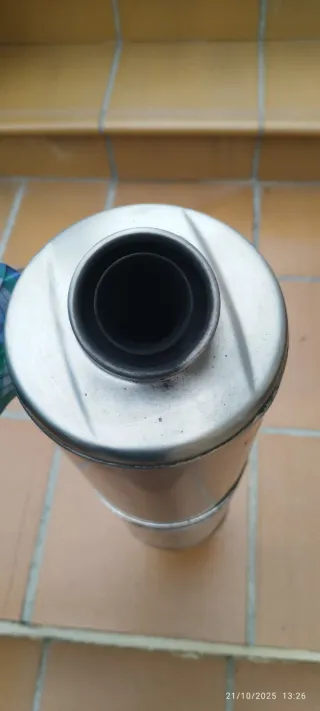 Tubo de escape de acero inoxidable para motocicleta. Diseño cilíndrico y acabado pulido. Escape original de BMW modelo f 650 gs - Material: Acero inoxidable. - Soporte de montaje incluido.