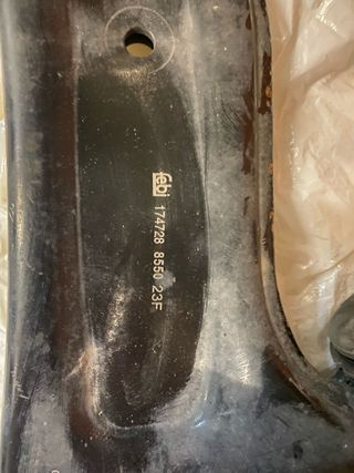 Conjunto de brazos de suspensión para BMW. - Piezas de repuesto para el sistema de suspensión. - Marca Febi Bilstein - Validos para modelos Bmw f45/f46, X1, Mini, etc... -Los brazos están nuevos, los casquillos no, se puede ver en las fotos ultimas que tienen la goma del silentblock con grietas. Se cambiaron solo los brazos y seguían haciendo ruido por lo que se cambió todo el conjunto por el original. Por tanto lo quede vende que esta nuevo son los brazos, apenas tienen 300 km. - En la foto se aprecian los numeros OEM para comprobar compatibilidad con tu modelo.