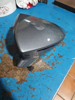 Carcasa de espejo retrovisor en color gris. - Compatible con Seat Ibiza y Seat Leon 4. Lado izquierdo conductor Tiene alguna patilla rota pero encaja bien y de pintura esta en buen estado para pulir.
