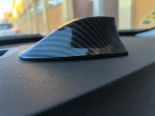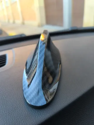 Antena tipo aleta de tiburón con acabado en fibra de carbono. - Diseño deportivo y moderno. - Material: Fibra de carbono.