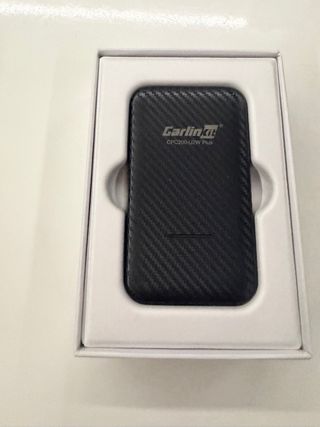 Adaptador Carlinkit 3.0 para CarPlay inalámbrico. Permite conectar tu iPhone a la pantalla del coche sin cables. - Diseño compacto y elegante. - Acabado en imitación de fibra de carbono.