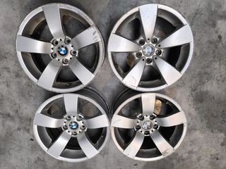 Juego de 4 llantas de aleación de 17 pulgadas para BMW E60. - Diseño de 5 radios. - Acabado plateado. - Incluye tapacubos con logo BMW. -Algo raspada alguna llanta