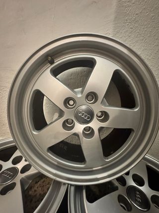 Juego de llantas originales Audi de 17 pulgadas, modelo del año 2017. - Diseño deportivo de 5 radios. - Acabado plateado. - Logo de Audi en el centro.
