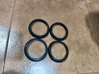 Set de 4 centradores de plástico sin estrenar para llantas de coche. - Diámetro exterior: 66.6 mm - Diámetro interior: 57.1 mm