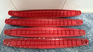 Set de protectores para puertas de coche con diseño deportivo. - Cuatro protectores largos en color rojo con textura de fibra de carbono. - Dos protectores curvos negros con logo de Honda. - Dos embellecedores para cerradura de puerta con logo de Honda. - seis tiras negras con logo de Honda. - a los protectores grandes a 2 les falta un poco de cinta de doble cara - y vienen un montón de tiras para los pinchazos