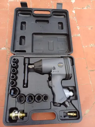 Kit de pistola de impacto neumático Craftomat. - Incluye juego de vasos de 9 a 27 mm. - Incluye accesorios y maletín. - Conexión de 1/2.