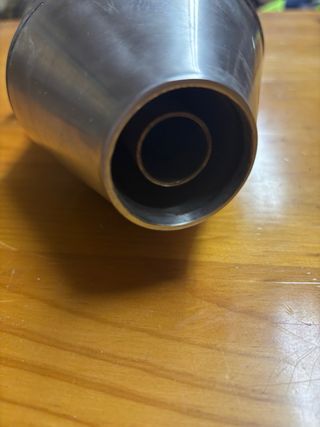 Silenciador original de Aprilia RX 125. - Fabricado en metal. - Diseño cónico en el extremo.
