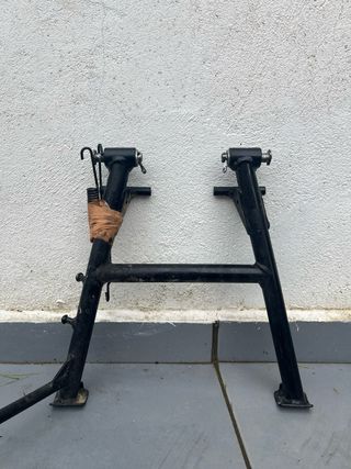 Caballete central para Royal Enfield Himalayan 411. Fabricado en metal negro. - Diseñado para el modelo Himalayan 411. - Incluye resortes y pasadores.