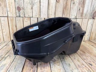 Baúl de asiento para SYM Maxsym 400i del año 2014. Presenta pequeño daño que se ha marcado en rojo en una de las imagenes.