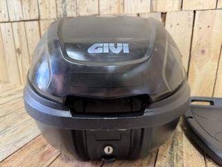 Baúl Givi modelo E300NT de 30 litros con parrilla universal incluida, en buen estado general y listo para usar. Ideal para scooter o moto, perfecto para transportar casco, mochila u objetos diarios con seguridad. Sistema práctico y resistente para uso urbano o viajes cortos. Envío disponible. HD19SHM1250079