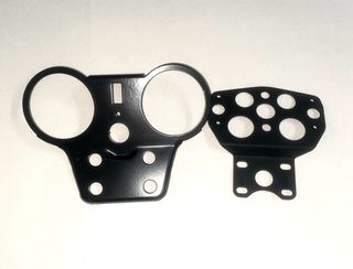 Soporte para los relojes de una PUCH MONZA. Fabricado en metal negro. NUEVO. - Incluye el soporte principal con dos orificios grandes para los relojes. - Incluye una pieza adicional con varios orificios. - Color negro. Clave: 49 50 74 75 80 90 marcadores cuentakilometros