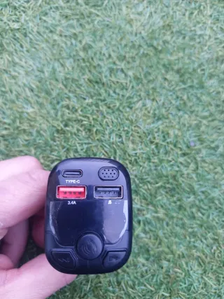Este transmisor FM para coche te permite disfrutar de tu música y llamadas con manos libres. Se conecta fácilmente a tu vehículo. - Se conecta al mechero o toma de 12v del vehículo. - Puertos: 1x USB Tipo-C, 2x USB (uno de 3.4A). MicroSD - Botón central multifunción. - Controles de reproducción y llamadas - Funciona a 12v y a 24v.