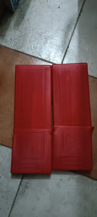 Se venden dos triángulos de señalización para vehículos. - Color rojo. - Diseño plegable para fácil almacenamiento.