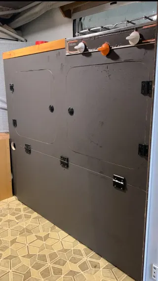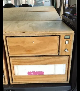 Mueble de madera para cama camper. Ideal para adaptar tu vehículo yo la tenía en una Nissan serena - Construcción robusta en madera. - Diseño funcional para optimizar el espacio, ducha exterior con deposito de 40 litros , nevera y varios cajones