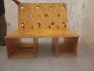 Mueble de madera diseñado para camperizar tu coche. Ideal para organizar el espacio y crear una cama. - Fabricado en madera contrachapada. - Diseño modular con compartimentos de almacenamiento. - Acabado natural.