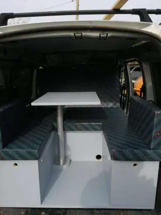 Mueble camper, artículo nuevo para todo tipo de furgoneta pequeña, cama y mesa sin perder las 5 plazas, fácil de poner y quitar, y pasa itv, los hacemos a medida para todo tipo de furgonetas , kangoo, berlingo, partner, dokker, rifter, jumpy, escudo,caddy etc. Precio del mueble, cama con mesa y mesa exterior desde 250,colchón con funda a medida, desenfundables y el color que más le guste 140,hacemos envíos a toda españa por 30 euros aproximadamente, preguntar sin compromiso
