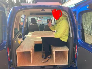 Mueble camper para minivan, berlingo rifter kangoo caddy dacia ford... adaptable para todas las furgos pequeñas. Tiene cajón para el fuego, mesa lateral, mesa central, espacio para poner todas las cosas sin problema. Entre los asientos y el mueble se guarda la base de la cama y los pies. Se ha usado dos veces. Estaba montado en una ford tourneo courier 2025. Se incluye nevera, estación de energia portátil, colchón y si tienes una tourneo courier te regalo los oscurecedores de todas las ventanas. Se vende por venta de vehiculo