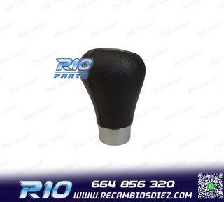 Pomo de cambio de marchas para Peugeot y Citroen..Estuvo en Peugeot 307 - Diseño de 5 velocidades más marcha atrás (R). - Acabado metálico plateado. - Incluye funda de cuero negro, acoplada a palanca