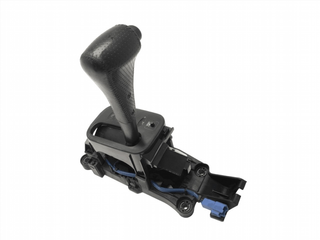 Palanca de cambios automática con funda de cuero y costuras azules. - Diseño deportivo y moderno. - Base brillante. - Botones de selección de marcha: P, R, N, D, S.