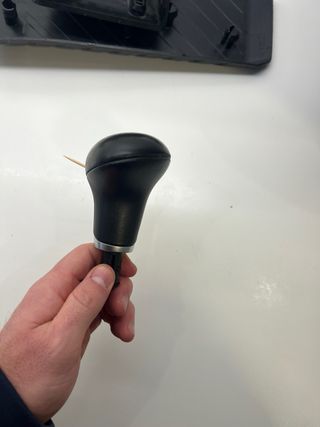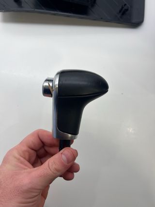 Pomo de cambio automático original para Audi. Pieza de repuesto de alta calidad. - Diseño ergonómico. - Acabado en negro y cromo. El palillo esta puesto para sacar el boton de marcha atras para la fotografia. Esta en perfectas condiciones, con alguna marca de uso que apenas se aprecia.