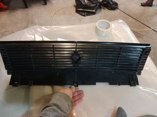 Rejilla frontal para Renault 11.sin usar, nueva, se quitó del embalaje original incluso tiene unas rebabas del plástico sin quitar - Color negro con detalles cromados. - Emblema central en forma de diamante.