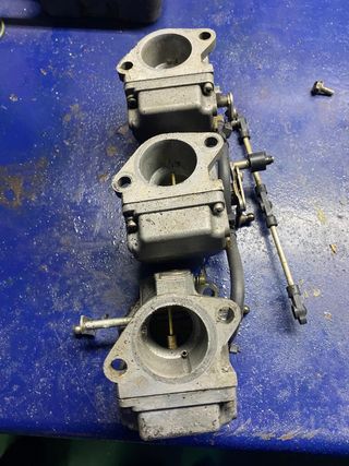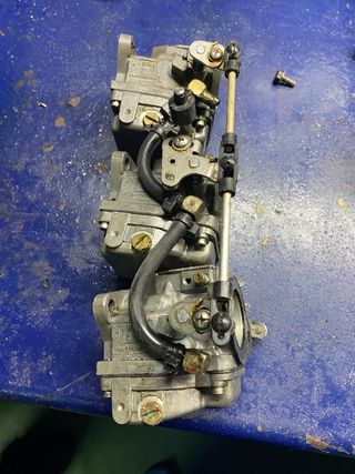 Conjunto de rampa de carburadores para Mercury de 50 CV de 2 tiempos. - Tres carburadores. - Conexiones y varillaje incluidos.
