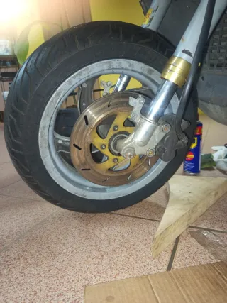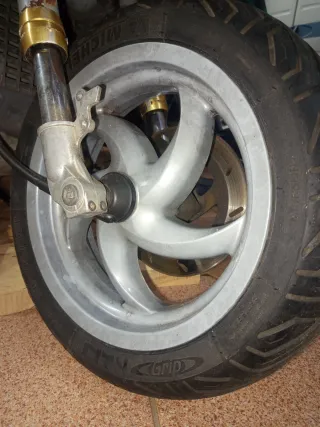 Rueda de Gilera Runner delantera en buen estado - Llanta de aleación plateada. - Neumático Michelin Grid.
