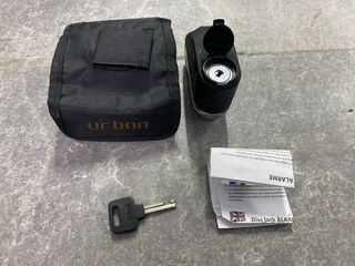 Candado de disco de seguridad para moto de la marca Urban. - Color amarillo y negro. - Incluye dos llaves. - Fabricado en la UE. - Tiene alarma sonora
