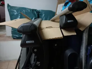 Juego completo de 2 barras de techo NORAUTO para vehículos con barras longitudinales de aluminio de 127 cm. Se vende por NO USO, están en perfecto estado.