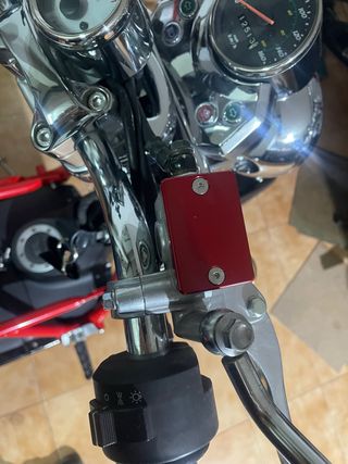 Conjunto de bomba de freno con maneta regulable y maneta de embrague regulable funcional pero con pestaña partida Adaptable a muchas motos. No original.